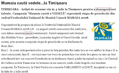 De observat alternanţa cuvintelor cu diactritice, lângă cele fără. Articol preluat în grabă, cu o exprimare demnă de presa anilor ’90.
