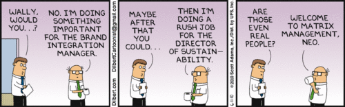 În orice corporaţie mai mărişoară, sistemul clasic cu un-şef-per-angajat se cam topeşte. Angajatul are un număr de abilităţi, pe care şi le poate aplica cu succes în mai multe proiecte. Aşa că azi conlucrezi cu managerul dintr-un departament, mîine cu managerul din alt departament, şi tot aşa. Dacă eşti porc, poţi chiar să te prefaci că doar lucrezi, în timp ce-i minţi pe toţi că de fapt erai ocupat cu sarcini date de .. celălalt. Noa, este lipsă de etică? Cam da. Şi totuşi, este o practică destul de întîlnită prin alte ţări.